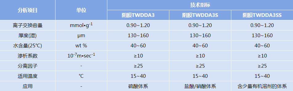 备注:上述数据均为参考值,而非离子膜的性能保证值,表格中的数据可能变更。