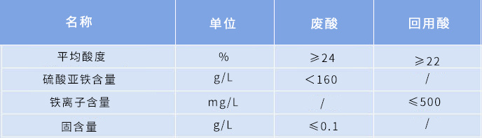 回收酸:480吨/天,硫酸浓度≥22%(回收率≥88%),亚铁含量<500mg/L(截留率≥99%)。
